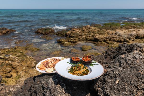 Homegrown delicacies like sea urchin spaghetti, or grilled octopus sandwich washed down with fragrant Salento wines are in the "Albachiara" daily paper menu .