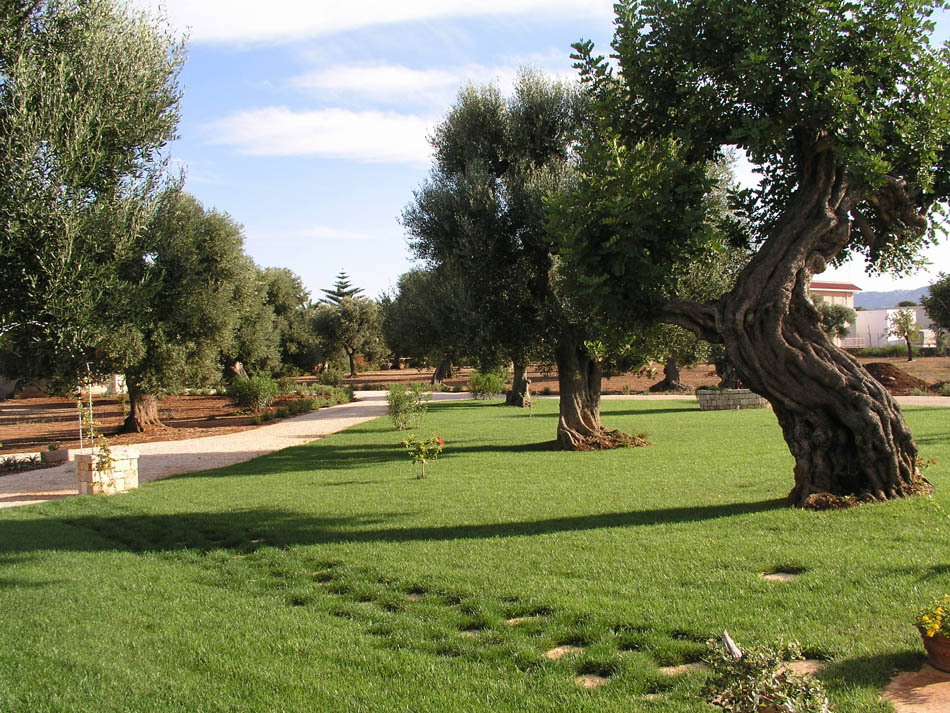 Circondato da un bosco di ulivi secolari, ritorti nel tempo, come dei giganteschi bonsai, dalla forza del vento di maestrale che spazza le coste pugliesi dell'Adriatico, la masseria si bagna della tranquillità e del silenzio tipico della campagna pugliese caratterizzato solamente dal ritmico canto delle cicale.
